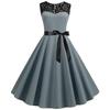 سيدة تنورات حجم كبير س الرقبة بلا أكمام انظر من خلال الدانتيل خياطة الشريط Bowknot ثوب ثوب ألف خط متزلج تنحنح كبير ميدي فستان الأميرة