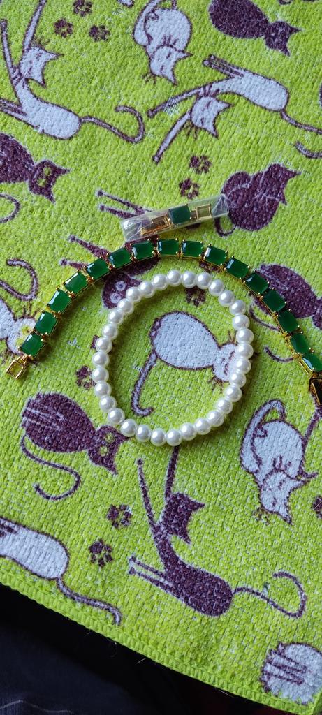 Náramek se zelenými bahnitými kamínky (podobně jako acháty), všechny kamínky jsou na svém místě. Děkuju