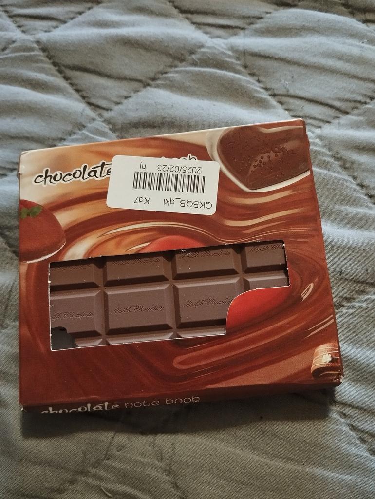 Neobvyklý zápisníček, takový u nás nekoupíte. Ve tvaru chutné čokolády a voní velmi příjemně.
