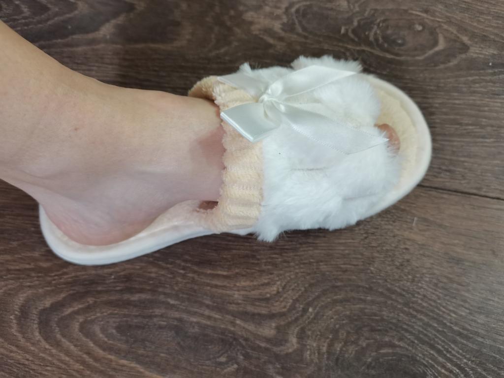 Teplé pantofle s dekorem Bowknot, neformální plyšové boty s otevřenou špičkou, pohodlné domácí pantofle