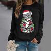 Women's Christmas Cat With Lights Printing O- Neck Long Sleeve T-Shirt Top