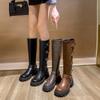 Platform Women Knight Knee High Boots Fashion Zippers Belt Buckle Long Boots Autumn Winter Women's Thick Heel Shoes