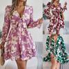 Temperament and Elegance Outer Wear Fashion Women's Short Dresses Printed Long Sleeve V-Neck Black Dresses for Women
