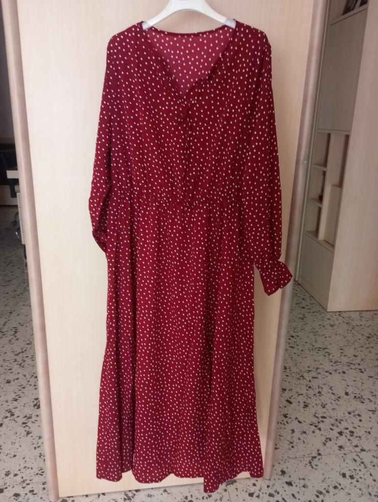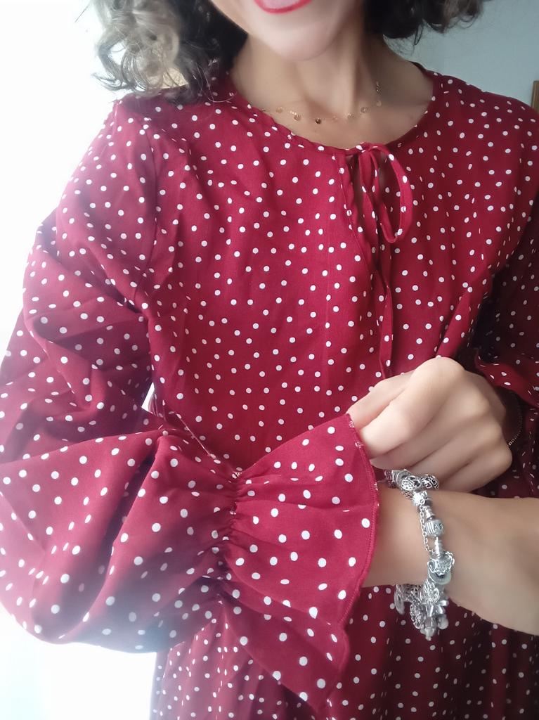 Tyto šaty prostě trefily hřebíček! Začněme tím, že jsou *volné*, což znamená, že jsou super pohodlné a lichotivé – nejsou příliš těsné, sedí hezky a splývají s tělem.. Potisk puntíky jí dodává takový nadčasový vzhled – klasický, ale s mladistvým a osvěžujícím švihem. Dlouhé rukávy ve stylu zvonu dodávají jemný a zvláštní šik a pozvedají celý vzhled.. Kulatý výstřih udržuje skromný a upravený vzhled a dlouhá délka sukně je velmi vhodná na jaro a podzim – právě když není zima, ale ani příliš teplo. *Látka (100% polyester)* je lehká, prodyšná a snadná na údržbu – stačí prát v ruce, bez dramat.. Závěrem, jsou to skvělé šaty pro všední den nebo pro neformální události, jsou neuvěřitelně pohodlné, vypadají skvěle a dobře sedí i na plnější postavě. Šaty, které vás nutí vyjít z domu! 💃