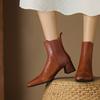 Women Boots Mid Length Autumn New Square Toe High-heel Patchwork Elastic Boot PU Leather Anti Slip Fashion Short Boot Botas