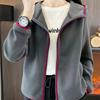 Dámské podzimní ležérní mikina napůl kapsa na zip jednobarevné dlouhé rukávy stojánek napůl vysoký límec hřejivý větruodolný zimní volný dámský svetr s kapucí top