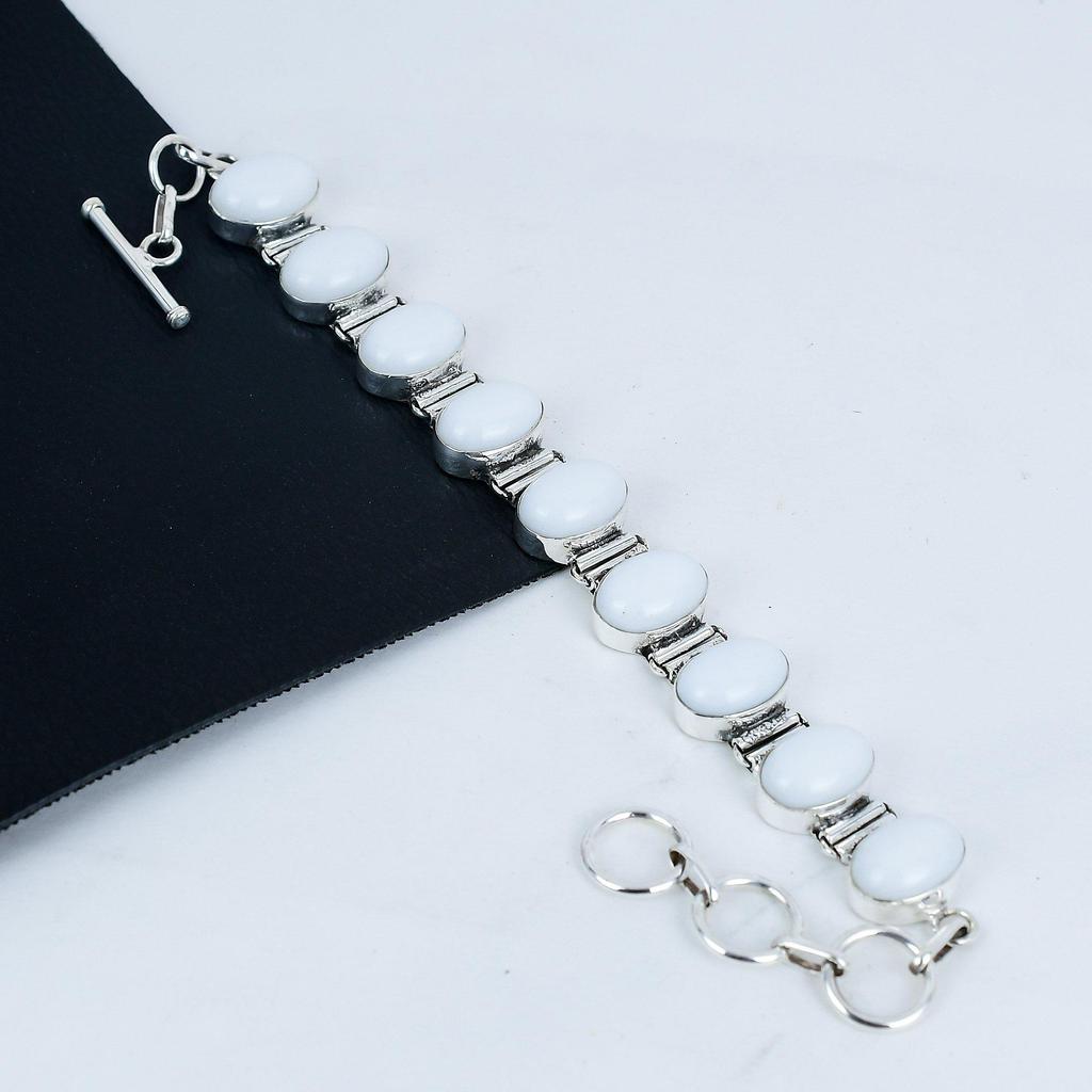 Náramek z přírodního bílého korálu, ručně vyrobený ze stříbra ryzosti 925, náramek s modrým safírem pro manželku, unisex náramek, dárek ke Dni otců