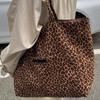 Leopard print canvas tote bag for women Korean fashion cotton fabric hobo bags large shoulder shopping bag
