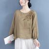 This elegant women's top is a perfect blend of retro and contemporary style, ideal for the 2024 spring and autumn seasons. Featuring long sleeves and a loose fit, it offers both comfort and style. The shirt is beautifully embroidered, adding a touch of literary flair to your wardrobe. Its round neckline complements the overall Chinese-inspired design, making it a versatile piece for various occasions. Whether you're dressing up or going casual, this slim-fit top is sure to make a statement.
