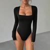 Women'S Lace Patchwork Tight Black Sexy Elegant Temperament Solid Color Long Sleeved Lace Jumpsuit