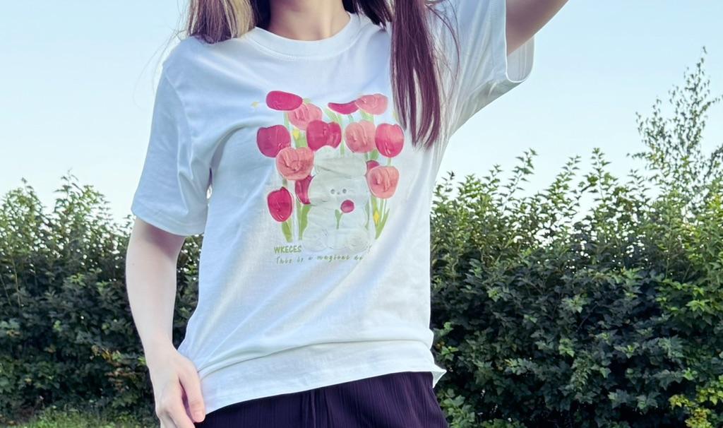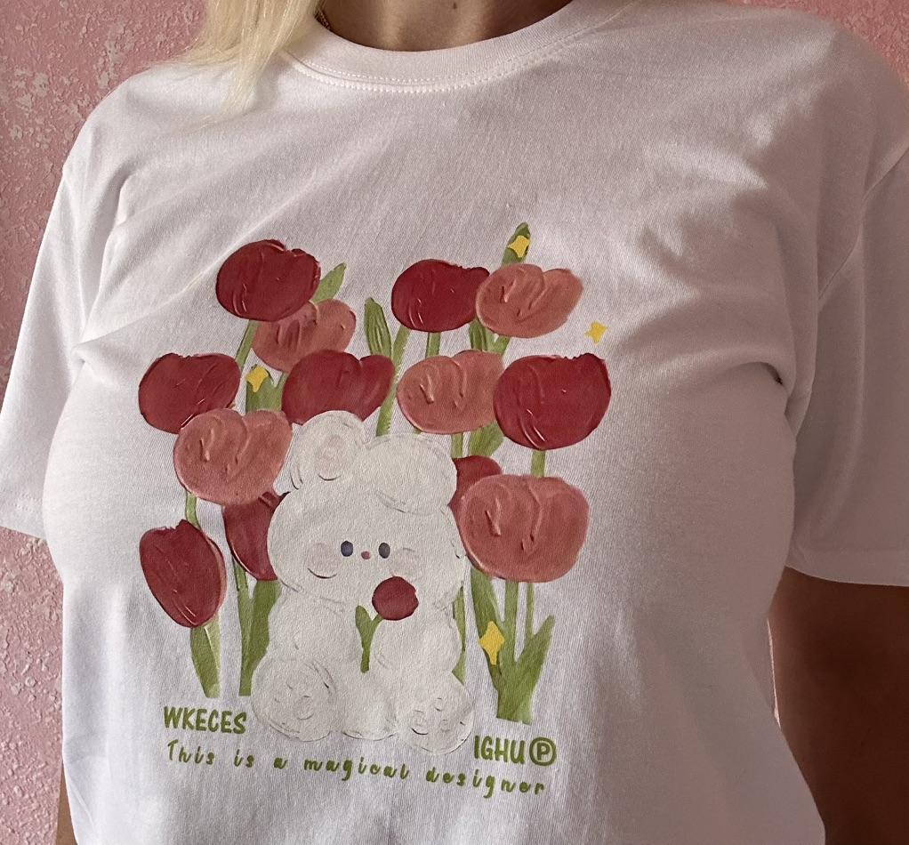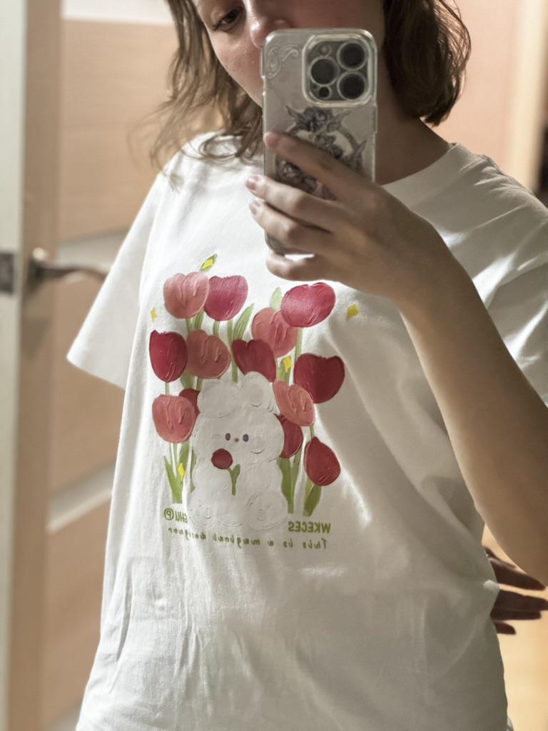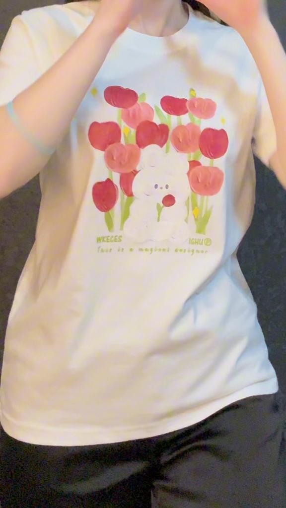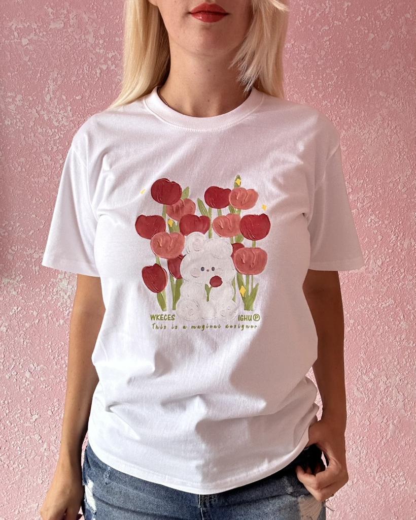 Letní dámské roztomilé bavlněné prodyšné tričko s potiskem kočky s krátkým rukávem