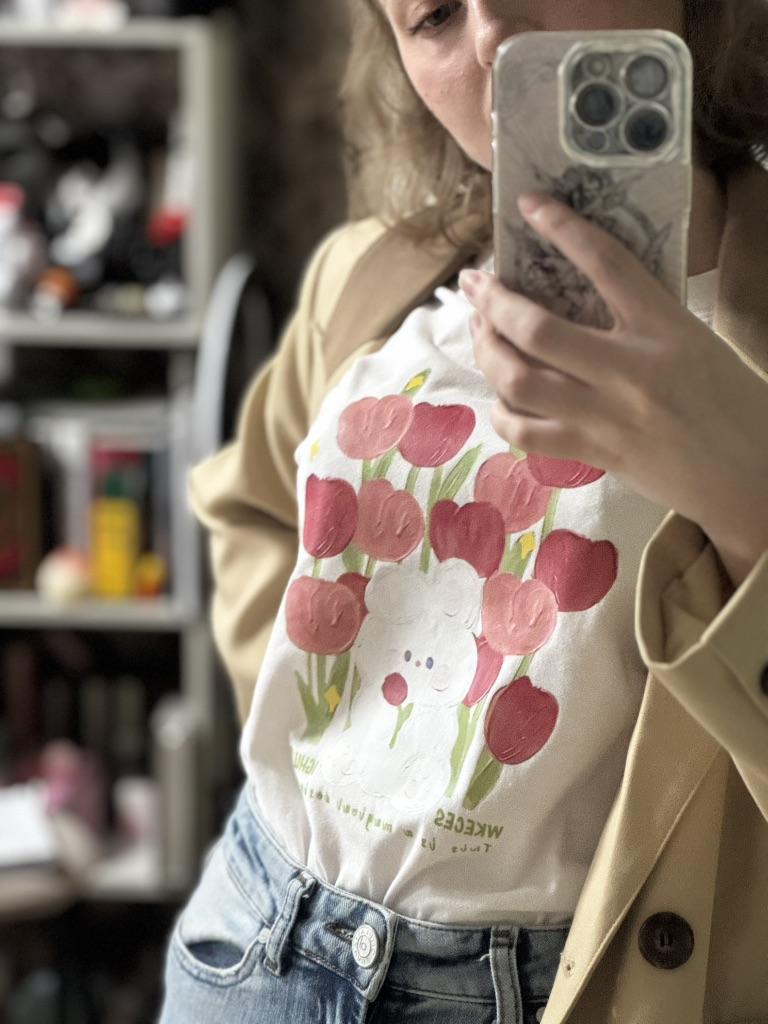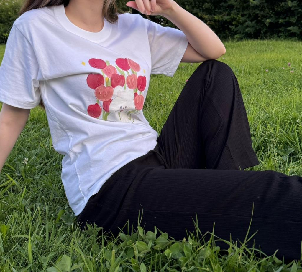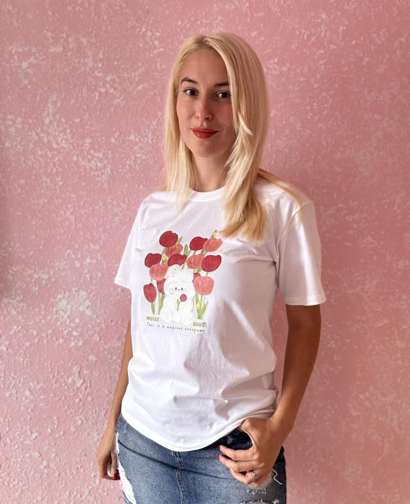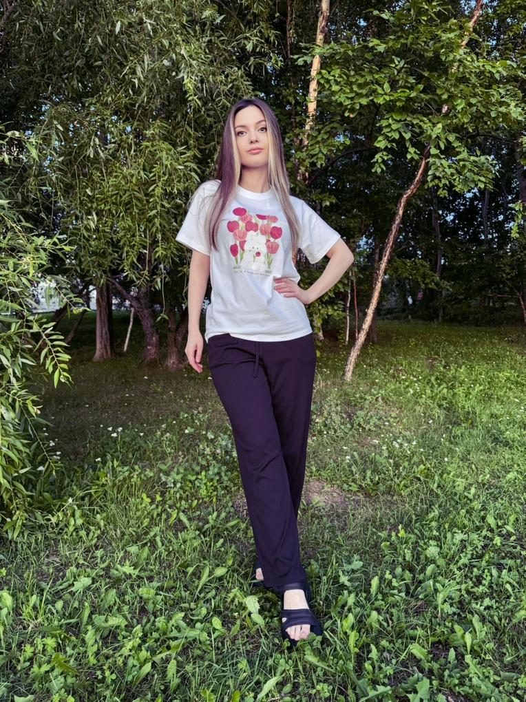 Letní dámské roztomilé bavlněné prodyšné tričko s potiskem kočky s krátkým rukávem
