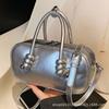 Mini Korean PU leather bag for women silver bowling shoulder bag girls crossbody bag fashion summer new