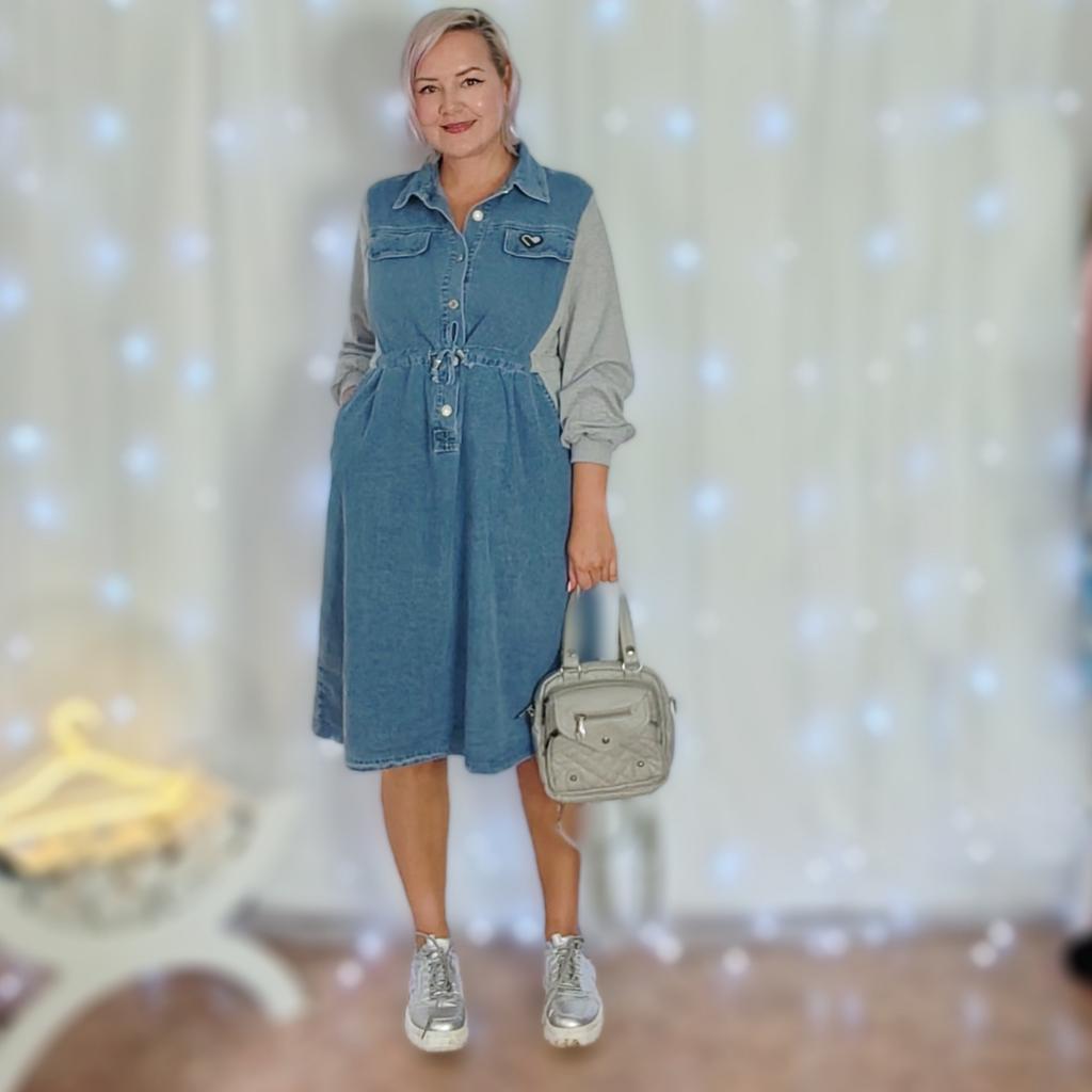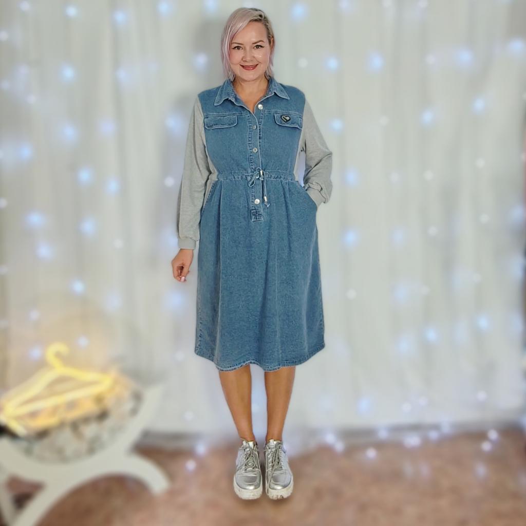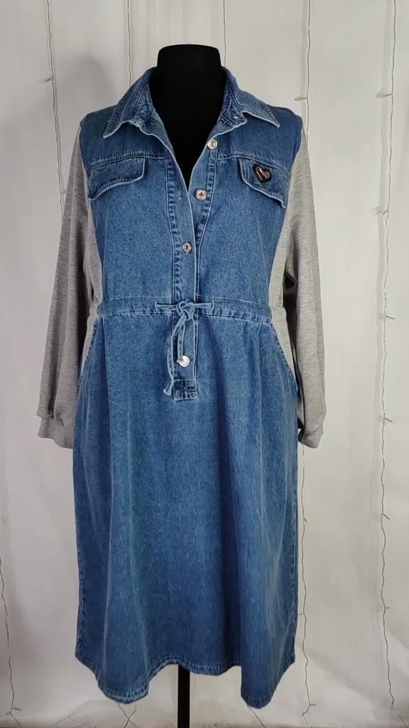 Mladistvé džínové šaty pro ženy Jaro Lichotivý volný střih Zakryjí bříško Zeštíhlující Elegantní dlouhé šaty