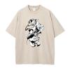 Anime Solo Leveling Sung Jin Woo Beru Print Washed Tee Men High Quality Cotton T-shirts Oversized T Shirt Harajuku Male Tshirt