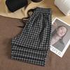 Discover the comfort of these navy blue plaid fleece pants, perfect for autumn and winter. Designed with a sporty style, these floor-length pants offer a relaxed, lazy vibe. Made from a blend that includes spandex, they provide flexibility and ease of movement. The drawstring waist ensures a perfect fit, making them an ideal choice for casual, leisurely days.