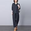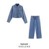 This stylish women's denim set features a turn-down collar shirt paired with belted wide-leg jeans, perfect for a casual look in Spring 2025. Crafted from quality polyester material, it ensures comfort and durability. The solid pattern adds a timeless appeal, making it a versatile addition to any wardrobe.