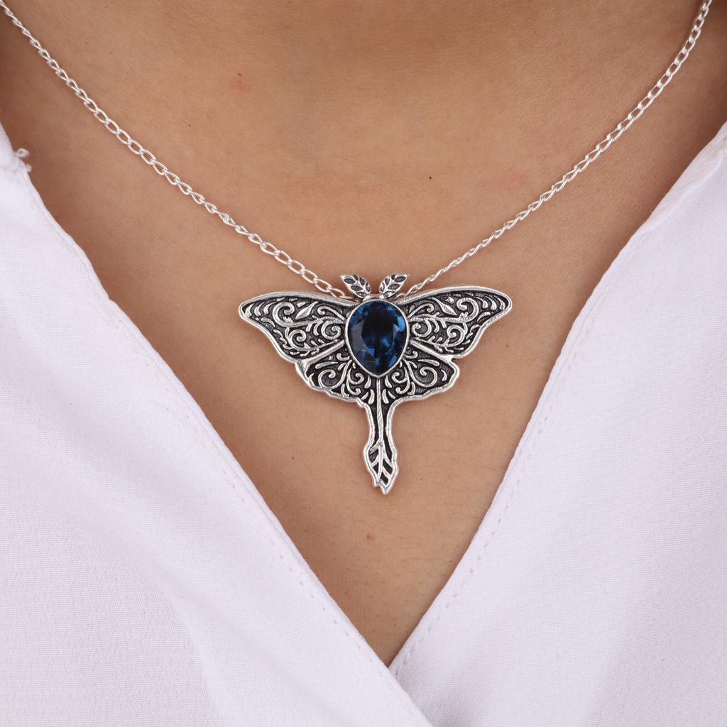 925 Silver Vintage Butterfly Pendant Blue Topaz Gemstone Necklace Women’s Gift"