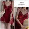 Gorgeous Lace See-Through Deep V Velvet Nightgown & Robe Set with Padding - Sweet Temptation 3908