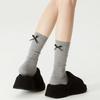Double-needle Ballet-style Grey Lace Socks Women's Spring and Autumn Mid-length Heel Bow Pile Socks