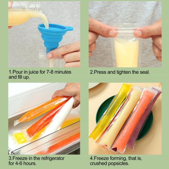Designed with transparency, the popsicle pouches allow you to see the color of the popsicle drink. And the funnel and tight seal allow for easy filling and sealing.
