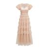 Fashion Women Casual Sexy Strawberry Sweet Mesh Yarn V-Neck Pleated Long Skirt