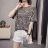Embrace effortless style with this Women's Floral Short-Sleeve T-Shirt, designed for Summer 2023. Crafted from high-quality polyester, this top offers a slimming loose fit that beautifully flatters any figure. It features a round neckline and short sleeves, providing a comfortable and breathable wear. The solid pattern is enhanced with a tasteful floral print, adding a touch of elegance to your everyday wardrobe. Perfect for moms seeking a fashionable, age-defying look.