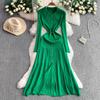 Spring Autumn Women College Stle Polo Color Full Sleeve Bowtie Knitted Sweater Mini Short Pullover Pleated Dresses