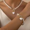 2 Pieces Of Women's Creative Pearl Love Necklace With Bracelet Zircon Set For Weddings, Banquets, Parties, Festivals, Gifts8162