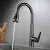 Grey/Brushed Gold/Black Kitchen Sink Faucet Pull Out 360 Degree Rotation Hot Cold Water Mixer Tap Single Hole Single Handle