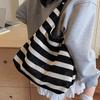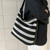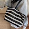 Premium contrasting striped woven bag large capacity hollow shoulder underarm bag tote bag leisure travel bag