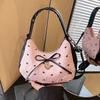 Premium light luxury shoulder bag summer new pink cute bow small square bag versatile crescent armpit bag women