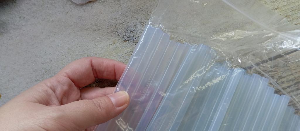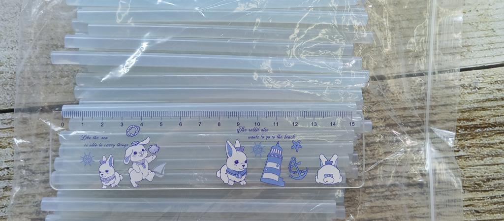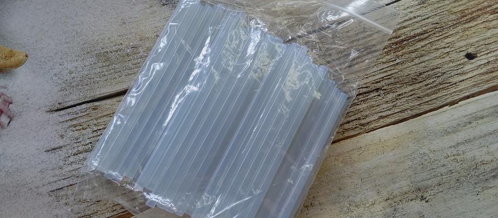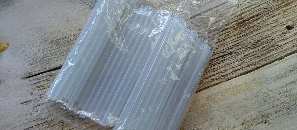 Balení tavných tyčinek. Balení obsahuje 50 tyčinek, které lze použít pro velký i malý dávkovač (já ho používám pro malý a funguje perfektně). Jsou průhledné. Objednal jsem si velké balení, ale pokud nepotřebujete tolik, jsou k dispozici balení po 5, 10 a 20 tyčinkách.. Každá tyčinka měří přibližně 16 centimetrů Fungují super dobře, doporučuji je.