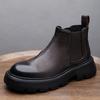 Tooling shoes men's 2025 autumn new leather mid-top Chelsea short boots flat-bottomed non-slip one-pedal casual men's shoes