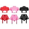 Damen-Nachtclub-Rave-Pole-Dance-Kostüm, 2-teiliges Leder-Dessous-Set, Stretch-BH-Tops mit Höschen-Set, Babydoll-Body