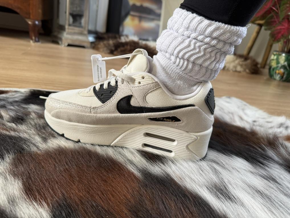 Nike Air Max 90 LV8 Weiß Metallic Gold Schwarz Damen Sneaker Team-Rot HQ3497-100