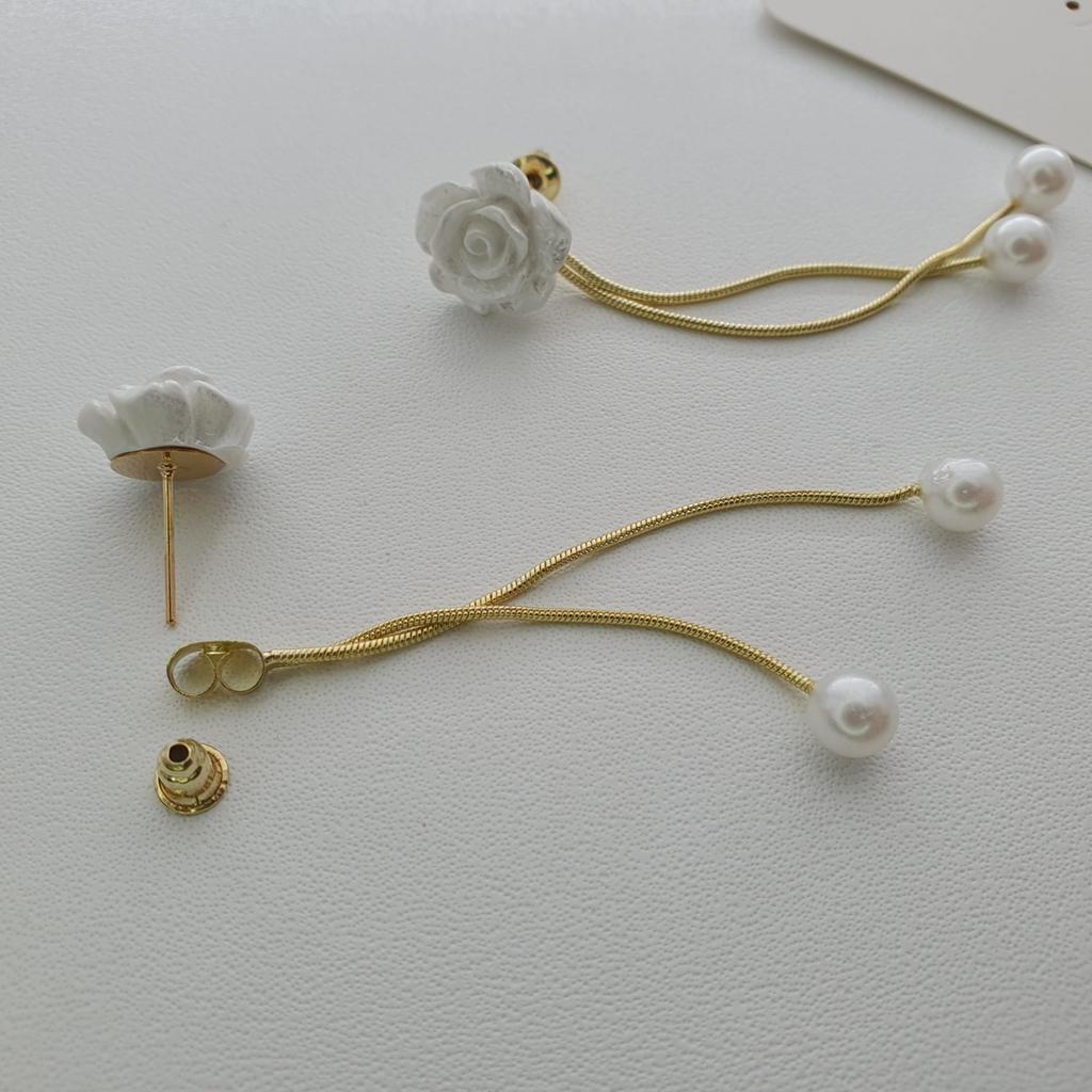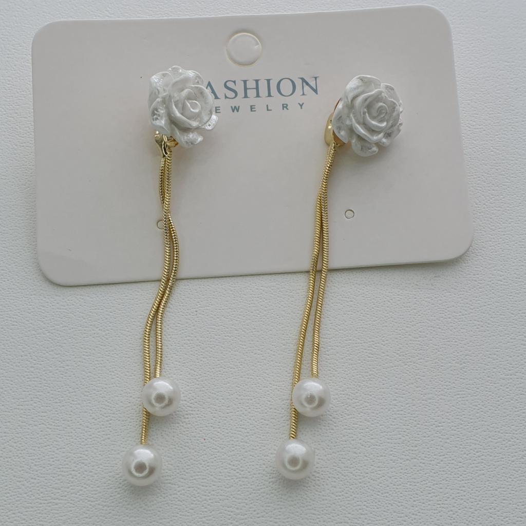 Λευκά σκουλαρίκια με κρόσσια καμέλια, γυναικεία μενταγιόν με μαργαριτάρια, niche design, high-end, φωτεινά, πολυτελή σκουλαρίκια με δαχτυλίδια temperament