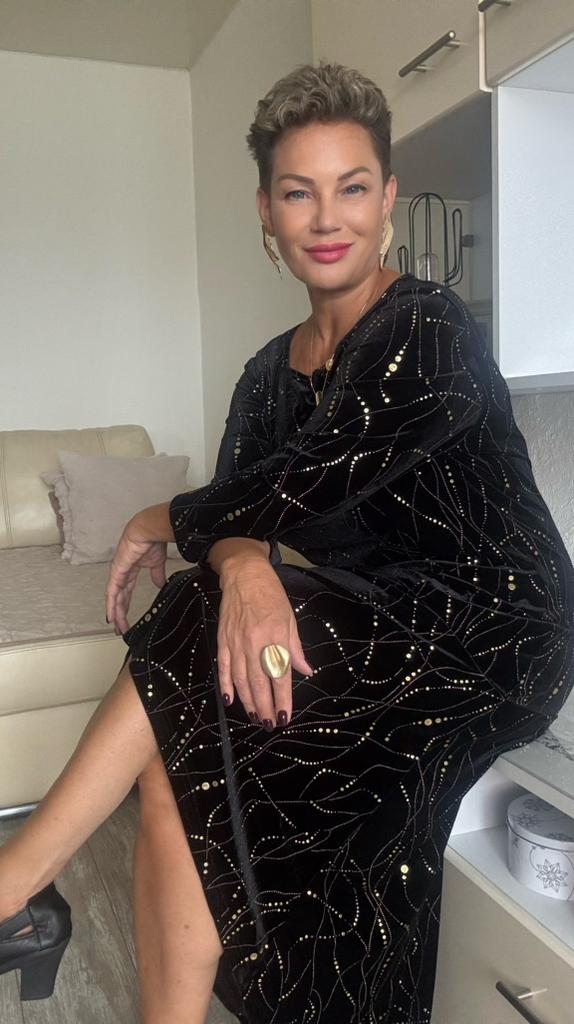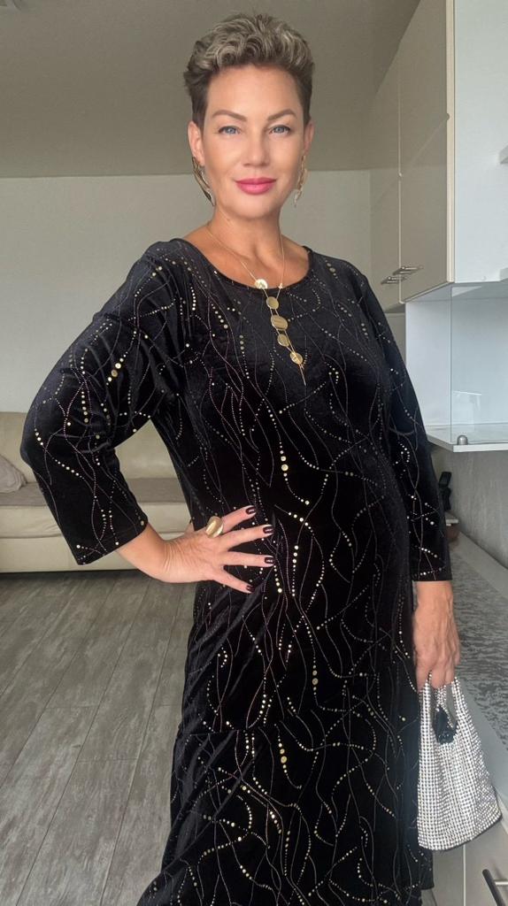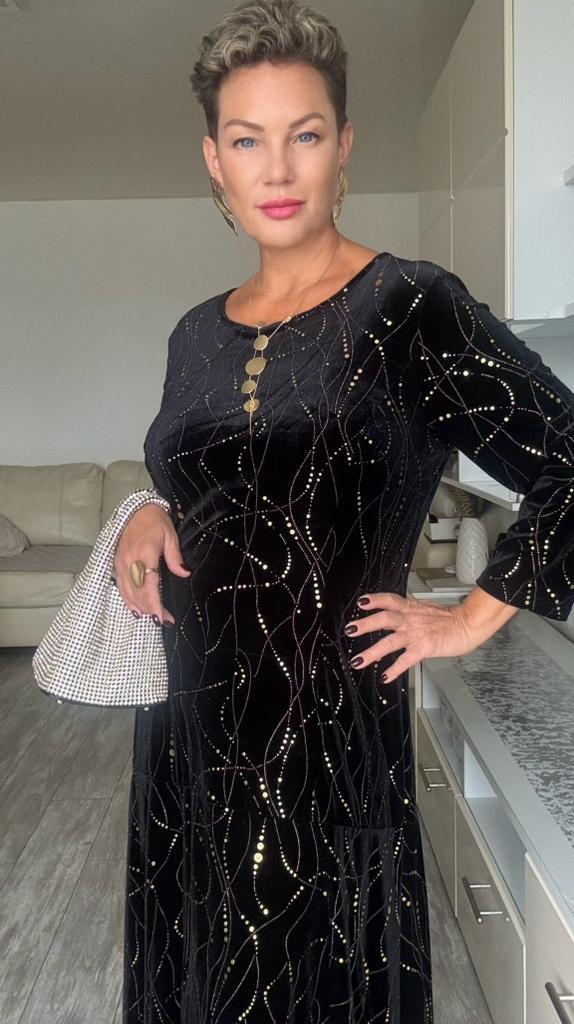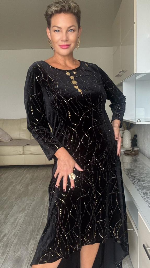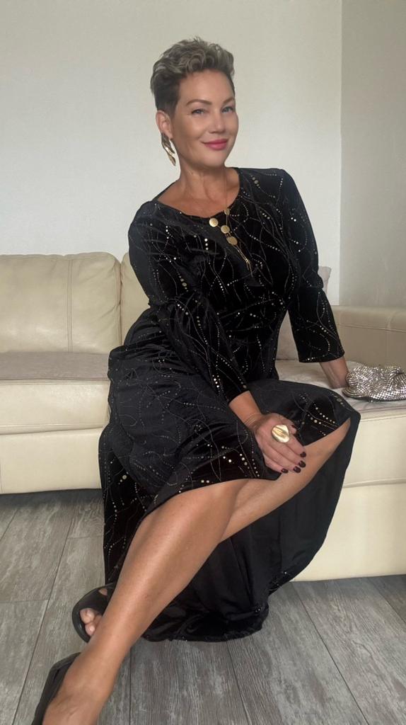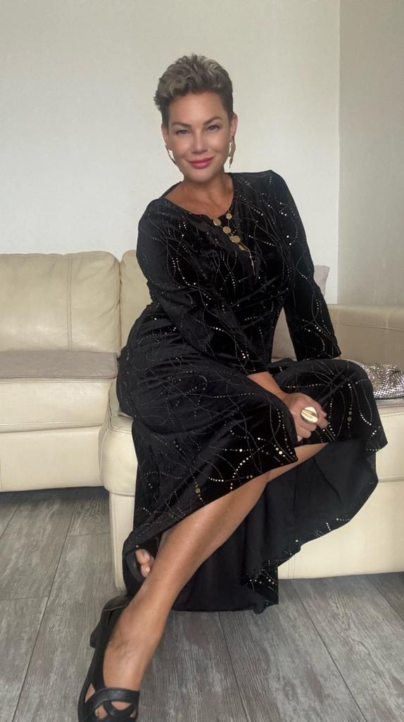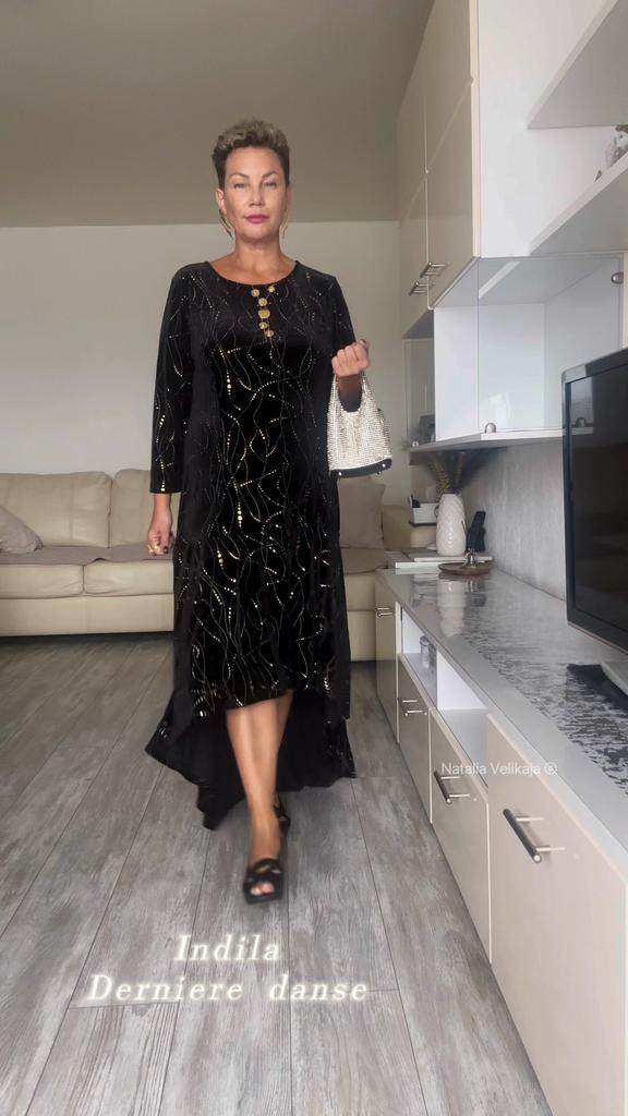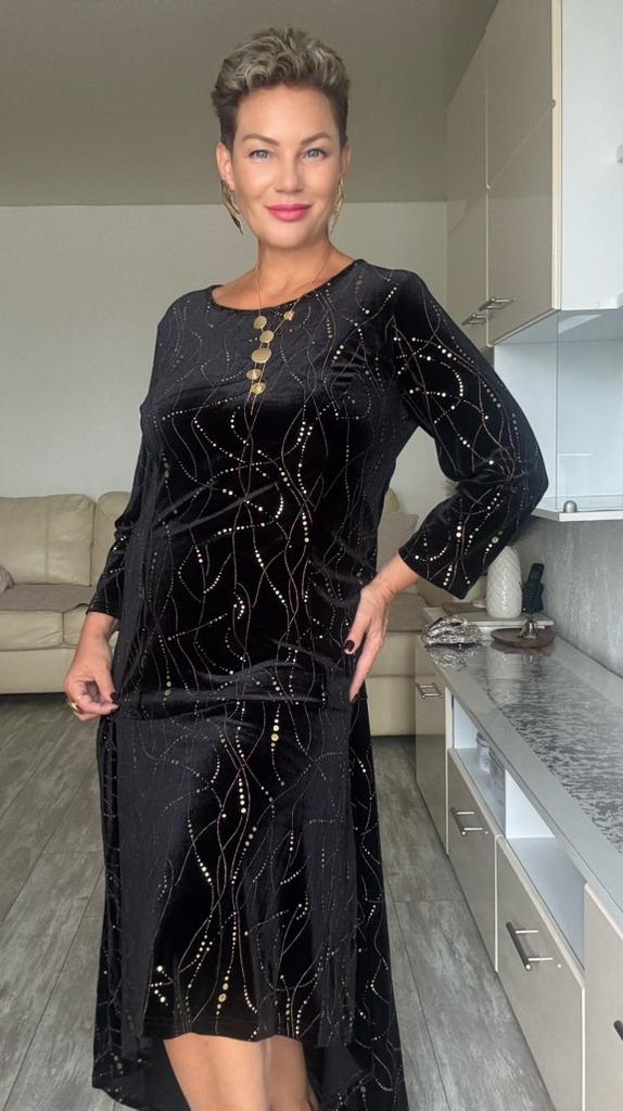 🛍️Plus Size Women's Dress🛍️ Rating⭐⭐⭐⭐⭐ I was looking for an elegant and comfortable dress in a large size, and this is definitely a positive surprise! This dress fits amazingly on the body – the high-low length is really flattering, especially if you want a feminine and flowing look without feeling constricted.. The fabric is soft and comfortable velvet, not too thick – just right for autumn or a summer evening. It has a bit of spandex, so it's also flexible and comfortable to move in. The round neck and regular sleeves give it a classic look, not too revealing but still with presence. The sizes are accurate – I took 2XL and it fit nicely, it's worth measuring chest and waist circumference beforehand because it fits quite precisely. For those with wide hips – it flares out nicely at the bottom so it doesn't press.. I loved how it drapes – the back is slightly longer than the front, and that gives it a slightly dramatic but very elegant look. Perfect for a wedding, holiday evening, or any event that requires investment but also comfort. In short – a stunning dress, comfortable on the body, and especially flattering for larger sizes. Highly recommend!