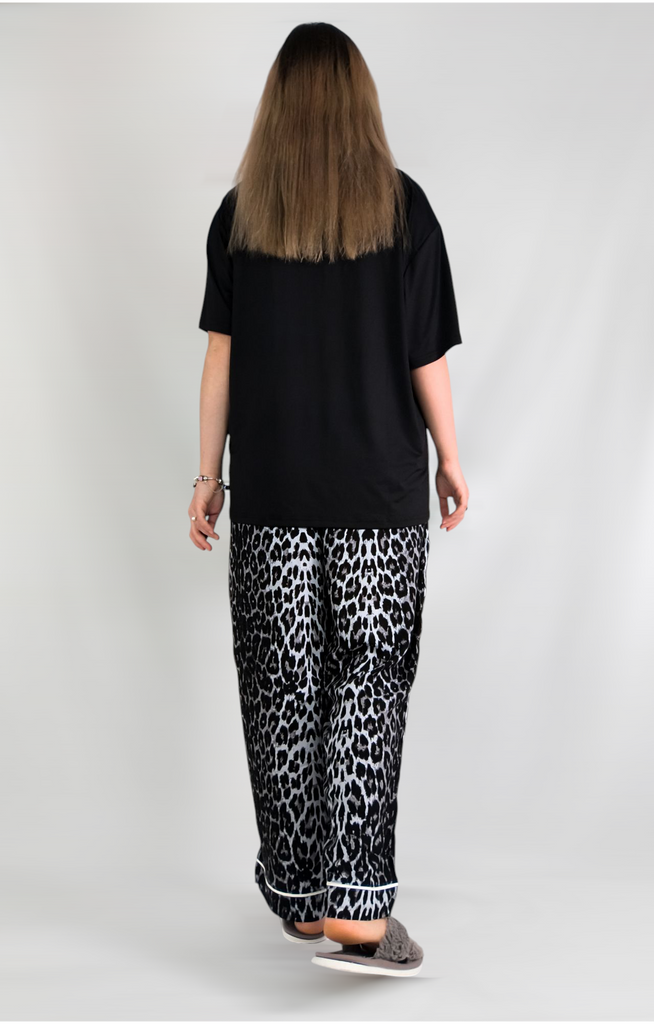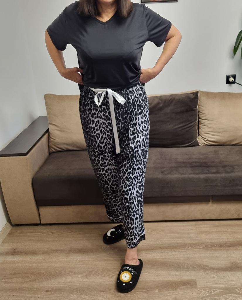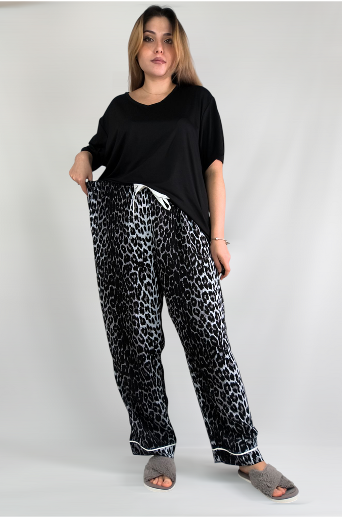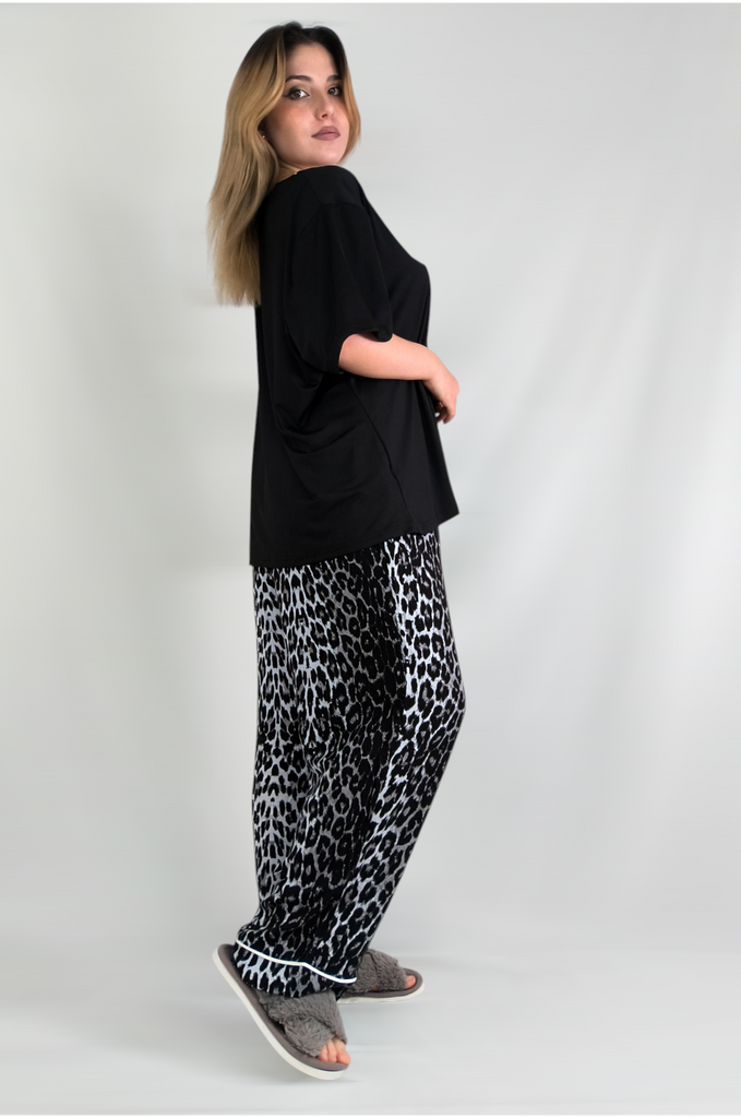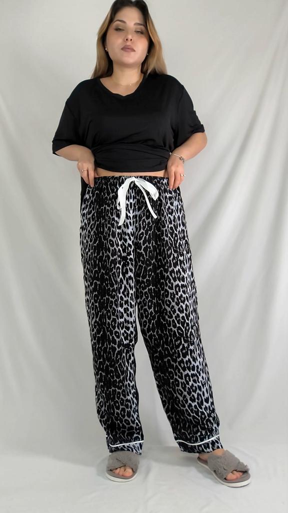 Women's Plus Size Pajamas Spring Summer and Autumn Leopard Print Short-sleeved Trousers Homewear Suit