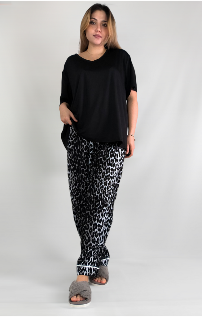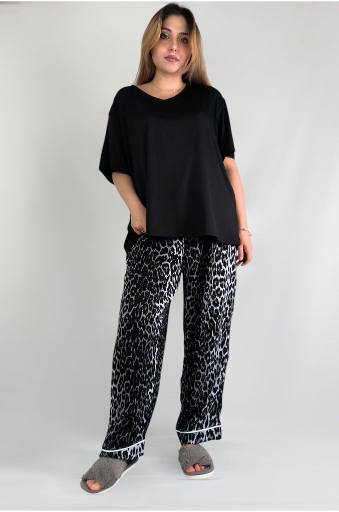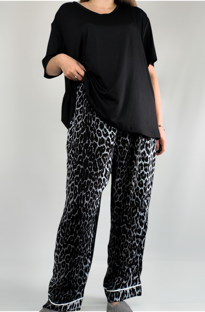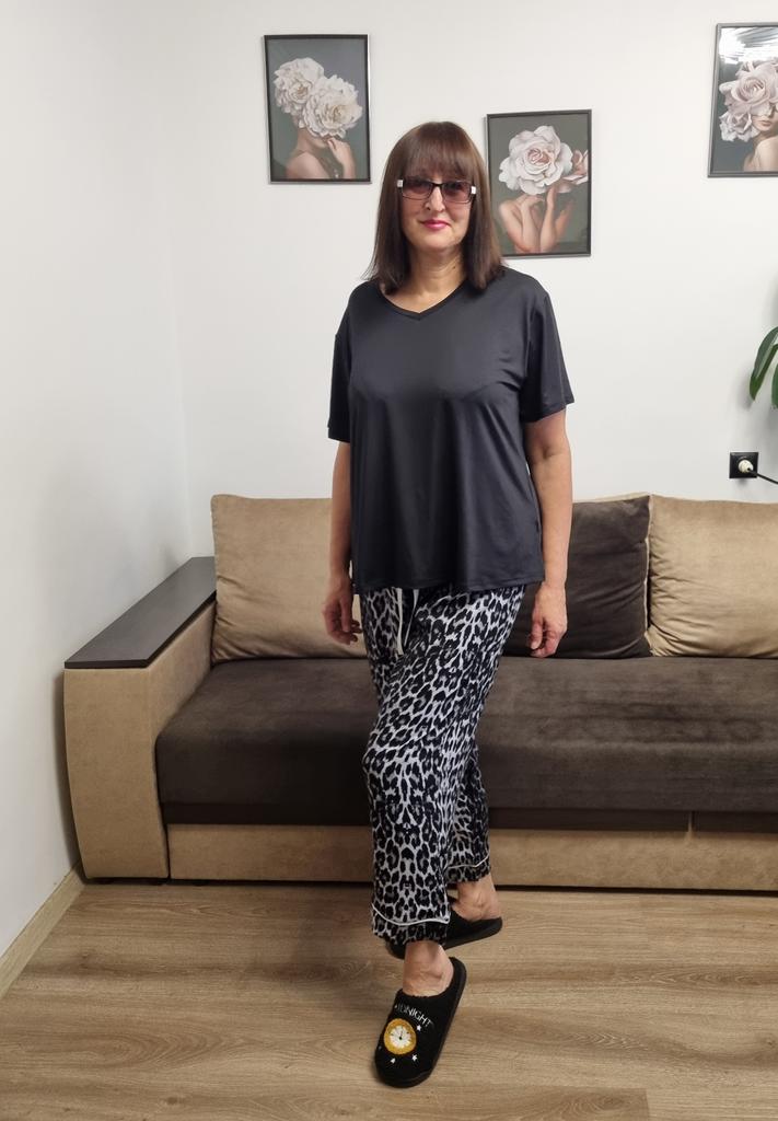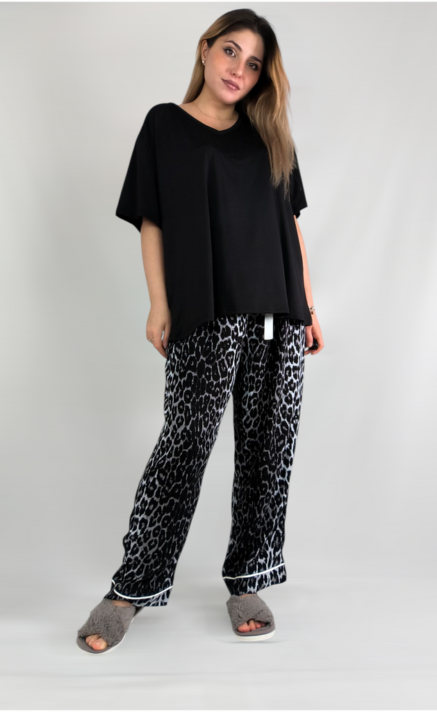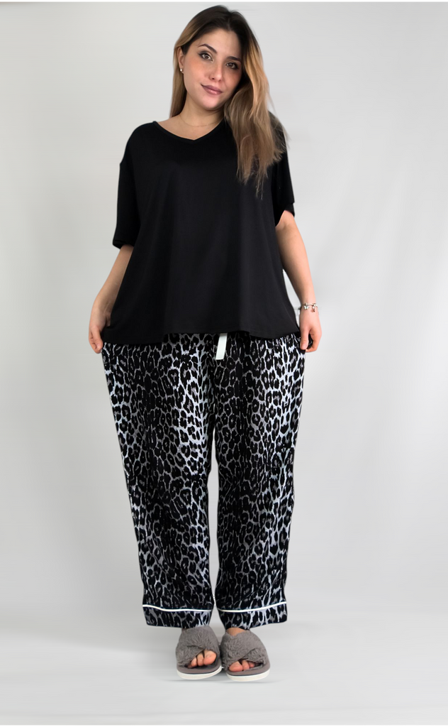 Women's Plus Size Pajamas Spring Summer and Autumn Leopard Print Short-sleeved Trousers Homewear Suit