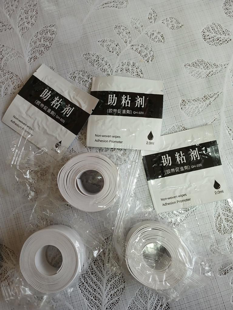 - The caulk tape is soft and flexible caulk sealing strip,quickly stick to the corner surface.Just peel off the pp film of caulk strip on the adhesive surface,then press firmly,no tool need.