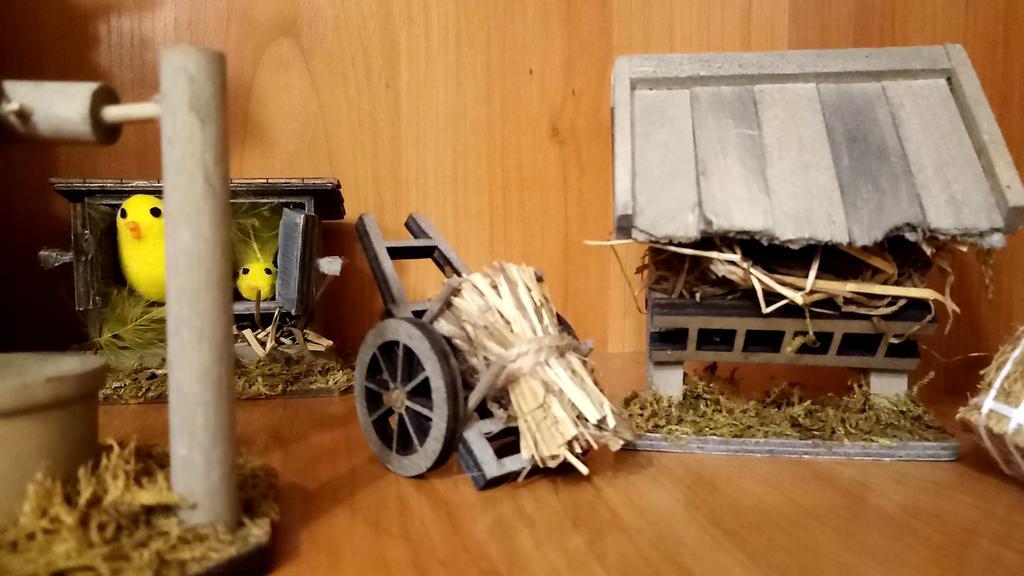 1:12 Scale Miniature Firewood Cart Model Tiny Desktop Display Art Collectible Wood Dollhouse