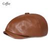 100.00% PU Leather Octagonal Unisex Forward Newsboy Berets Cap Hats