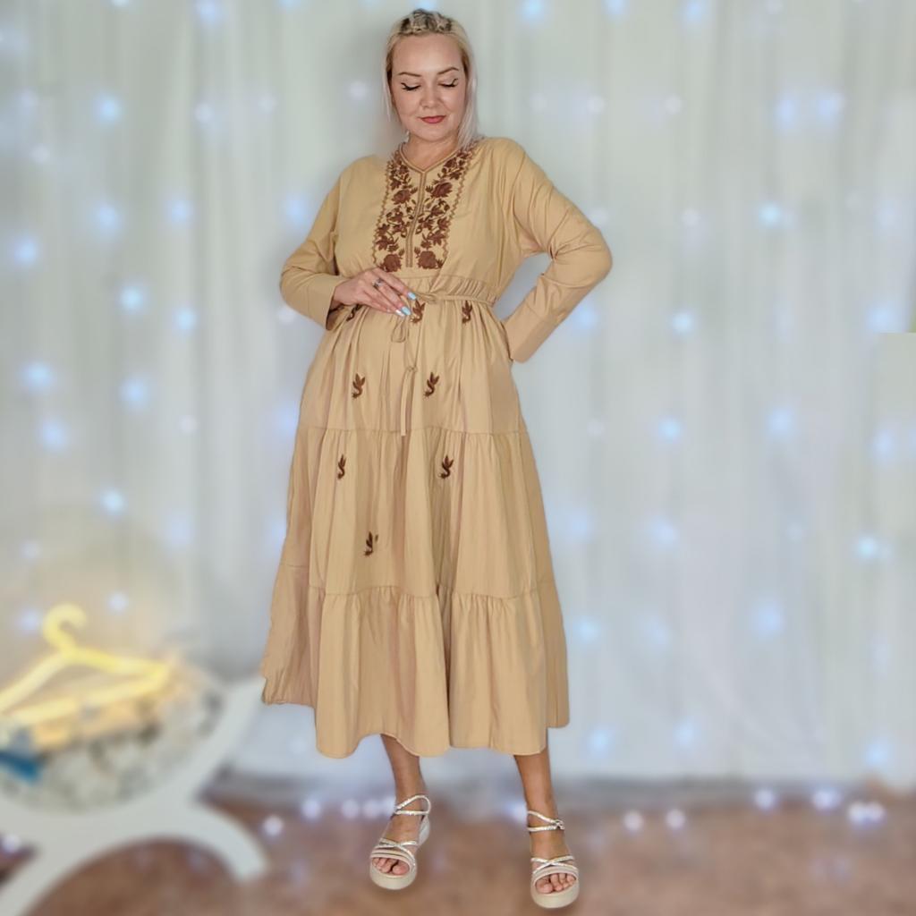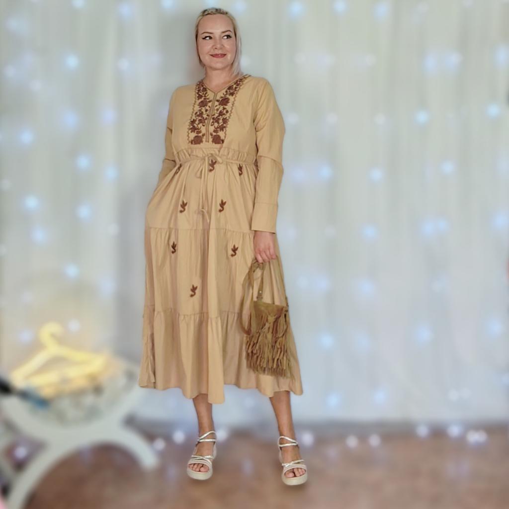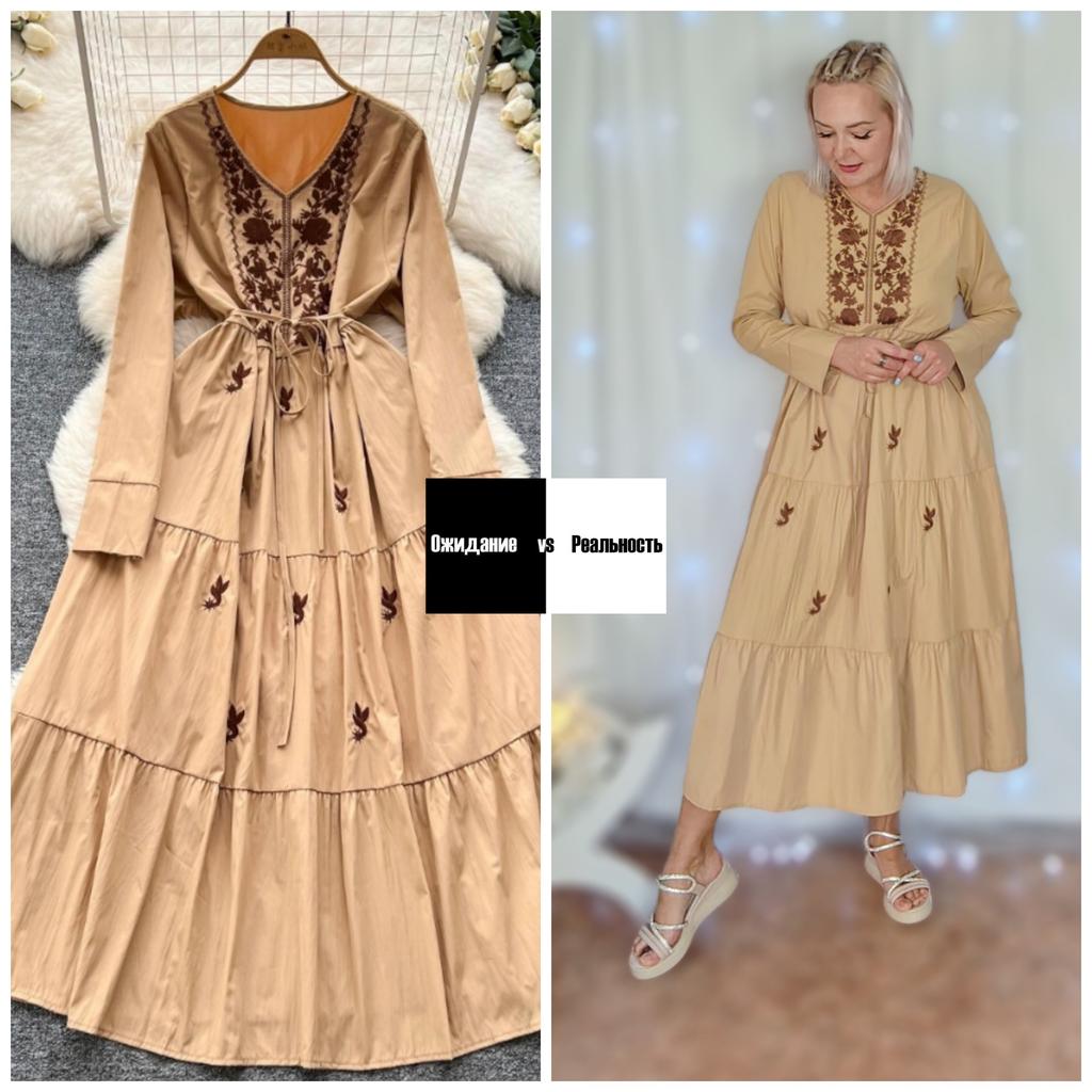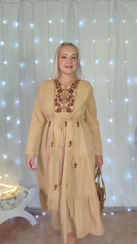 Women Spring Autumn Dress Retro Embroidered V-neck Strap Waist French Elegant Long Sleeve Grand Swing Long Dress