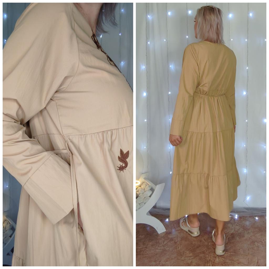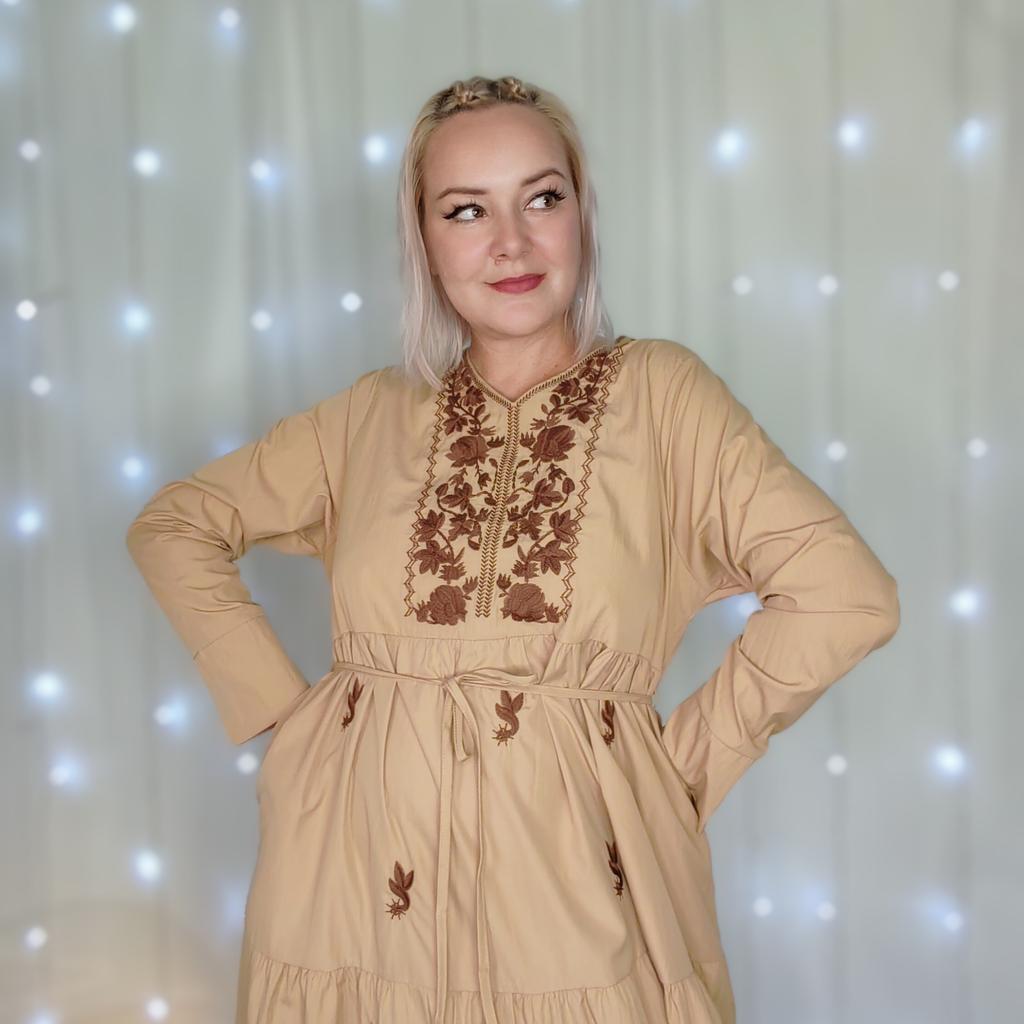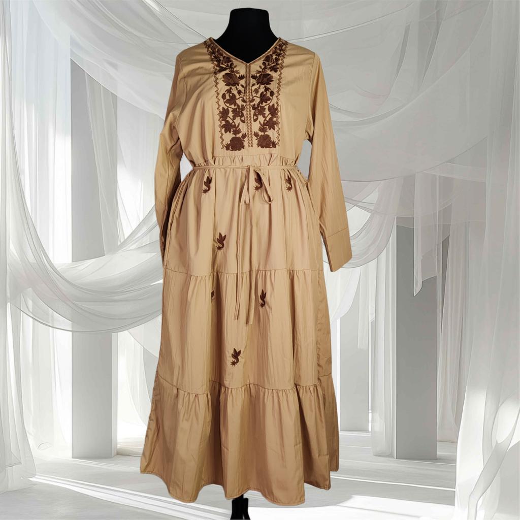 Women Spring Autumn Dress Retro Embroidered V-neck Strap Waist French Elegant Long Sleeve Grand Swing Long Dress