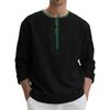 Henry Neck Men's Solid Color Linen Loose Casual Sports Long-sleeved T-shirt