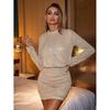Large Backless Sequins Dress Red Shiny Diamond Cut Out Socialite Party Gown Sexy Long Sleeved Female Short Wrap Hip Dresses