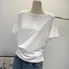 Women's Off-Shoulder Black Cotton Long-Sleeve T-Shirt, 2025 Spring/Autumn/Winter Collection