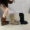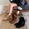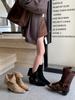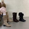 Coarse Heel Suede Medium Boots Women's 2025 Autumn and Winter Retro Spice Girl Style Western Cowboy Boots with Skirt Skinny Boots Short Boots