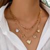 2Pcs/Set Bohemia Heart-Shaped Flower Pendant Multi-Layer Necklace For Women Summer Vacation Style Party Jewelry Neck Accessories